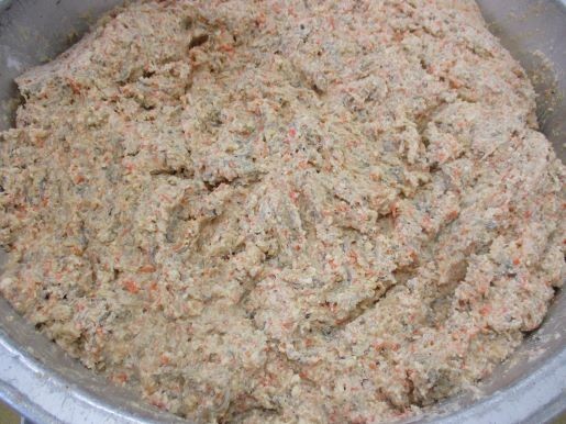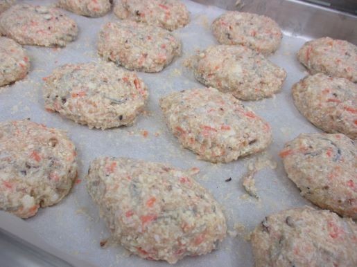 「高尾揚げ もみじあんかけ」はどちらも手作りです。高尾揚げは絞り豆腐、鶏ひき肉、ちりめんじゃこ、たまご、片栗粉、みじん切りの根しょうが、たまねぎ、にんじん、干ししいたけを調味料とともによく混ぜ、小判型にし、油でカラッと揚げます。