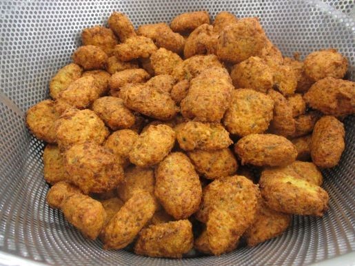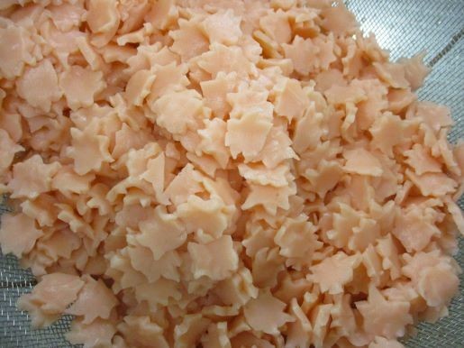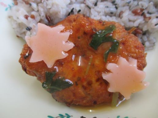 カラっと揚げた「高尾揚げ」に「もみじあんかけ」をかけます。もみじあんかけのかまぼこのオレンジ色は植物由来の色素で着色料ではありません。体に優しいかまぼこです。だし風味たっぷりの三つ葉が入ったとろりあんかけで「高尾揚げ」とよく合います。
