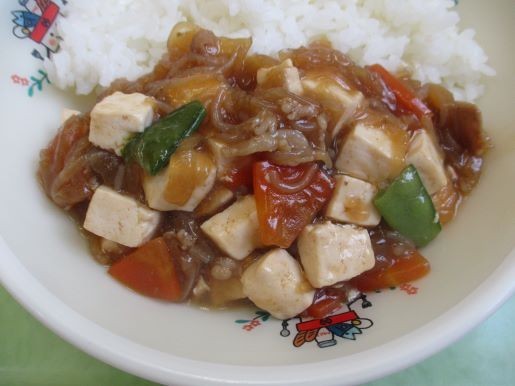 肉豆腐は豆腐、豚肉、野菜をたっぷり使って、作られています。豆腐も60キロ使いました。栄養満点です。体調の良くない人は無理せず。体調の良い人はしっかり食べて病気に対する抵抗力をつけましょう。また、手洗い、うがい、早寝、早起きを心がけましょう。