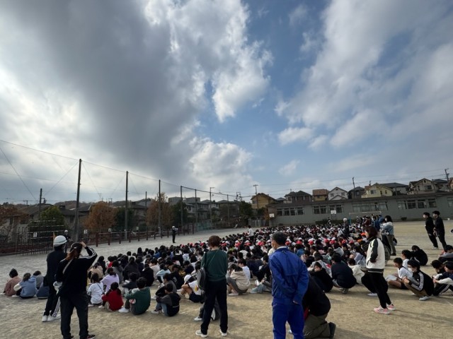 児童には予告なしで緊急地震速報が流れた後、地震が起きたことを想定し避難を行いました。