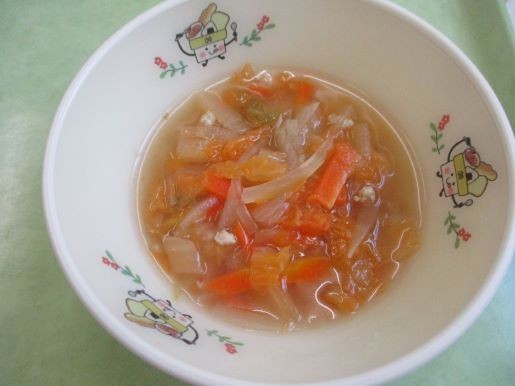 にんじんが入っているためでもありますが、いつもの「はくさいスープ」より、さらにオレンジ色に仕上がりました!!
