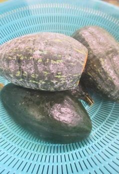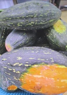 冬至にまつわる食べ物の一つに「かぼちゃ」があります。かぼちゃは目や鼻の粘膜を強くし、かぜを予防してくれます。今日納品してくださった八王子産かぼちゃは有機野菜の「万次郎」です。