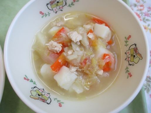 16日の給食は、きなこ揚げパン、ポトフ、だいこんとツナのサラダ、牛乳です。ポトフは無添加ベーコンを香味野菜としっかり炒めて、だしを加え、コトコト煮込んで作りました。だいこんとツナのサラダには、八王子大根をたっぷり使って作りました。どのメニューも残りが少なかったです。朝から「今日はきなこ揚げパンだ!!」と喜ぶ声が多く聞こえました。