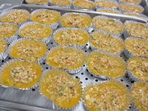 具と卵を少しずつ混ぜて分けることで、具や卵が均一性が高くなります。