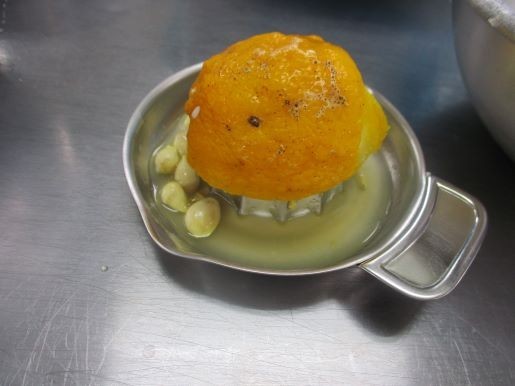 果汁を一つ一つ絞ります。