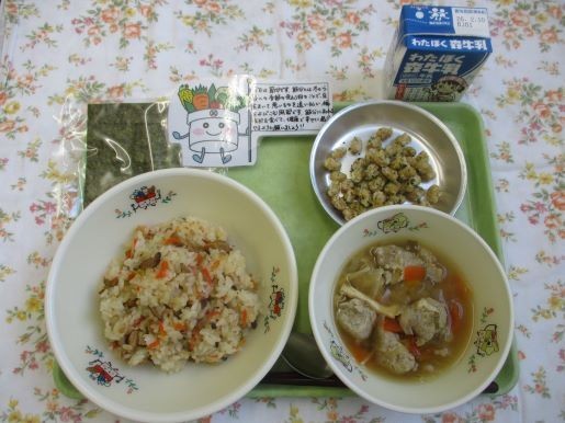 3日の給食は「節分献立」のセルフ恵方巻き、いわしのつみれ汁、ポップビーンズ、牛乳です。「節分」とは各季節の始まりの日の前日のことで、季節を分けることも意味しています。江戸時代以降は特に立春の前日を「節分の日」とされているようです。
