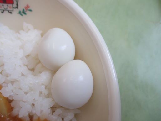 メンバーの大好物はカレーライス!!うずらのたまごで仲の良い二人をイメージしています。