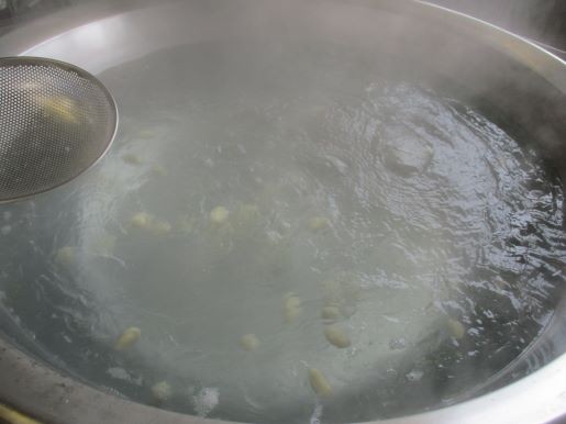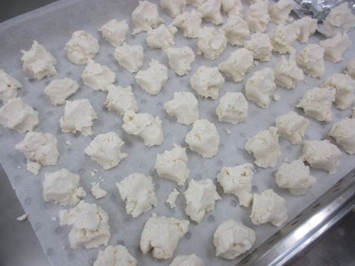 まず、一人分の大きさにちぎり分けてから、繭型に丸めます。全部で1800個ほどでしょうか・・・