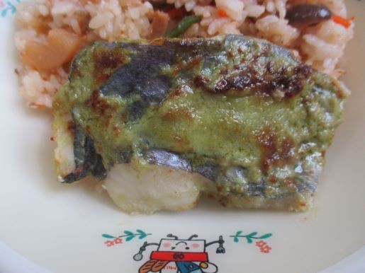 スチームコンベクションオーブンでふっくらこんがり焼いたら出来上がりです。かてめしとお吸い物とよく合う、桑都焼きでした。