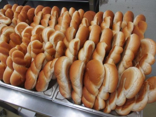 七国小学校のきなこ揚げパンは「ねじりパン」で作ることが多いです。異物がないか確認しながら数えます。