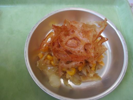 油でカリカリに揚げて、サラダとともにいただきます。サラダがパリパリれんこんで隠れていますが、いつも以上にサラダの残りが少なかったです。パリパリれんこんは残りがほぼゼロでした。