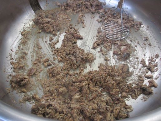 さば入りハンバーグは「さばの水煮」を加えます。骨まで柔らかいのですが、マッシャーでよくつぶします。