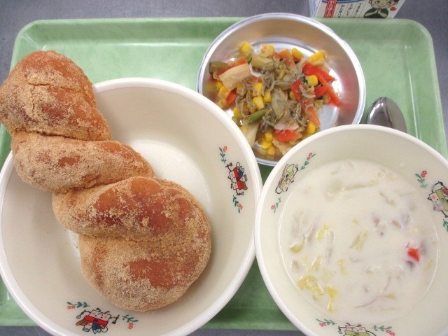 ★今日の給食は、人気メニューのきなこ揚げパンです。給食の時間を楽しみにしている子供たちの声があちこちから聞こえてきました。
