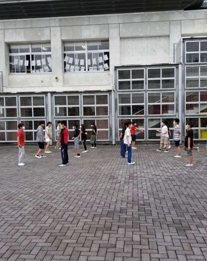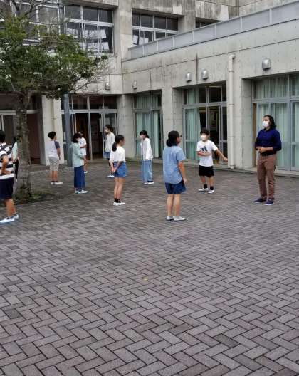 外国語の授業で一工夫 公開日 2020/09/14 更新日 2020/09/14 学習の様子 高学年の外国語の授業では、ソーシャルディスタンスを保ちつつ、コミュニケーション力を伸ばすために、中庭を使う場面があります。 夏休み中に目印をつけ、すぐに立ち位置がわかるように工夫しています。 いいね(0) 授業 1年 ひばり 研究・研修