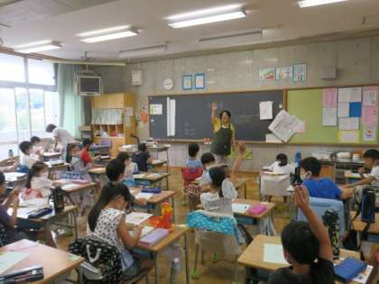 2年生が生活科で「どきどき わくわく まちたんけん」の学習をしています。今は、まちたんけんの計画を立てているところです。