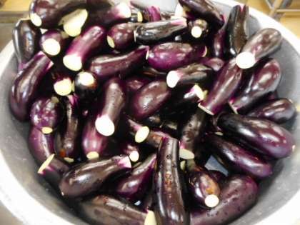 20kgのなすを半月切りに切って
