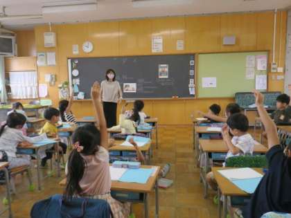 1年生が道徳で資料名「ダメ」を通して、善悪の判断と勇気について考えました。よく考えて発言していました。