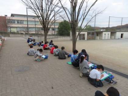 2年生が「大きく なあれ わたしの 野さい」の学習で、はつか大根を育てています。今日は、校庭で観察をしました。観察が終わってから収穫した児童もいました。