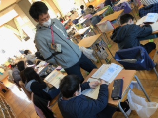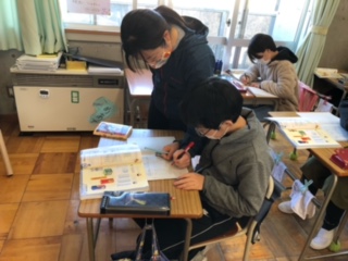 今日は見取り図を描く学習でした。俯瞰的に見える図形を描くのはなかなか難しいですが、定規を使って上手に描き上げていました。担任も、一人一人の様子を丁寧に見て指導しています。