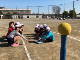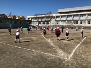 ルールをしっかりと理解して、楽しく取り組んでいます。ゲームが終わると両チームで得点を確認し、きちんとあいさつをして終わります。
