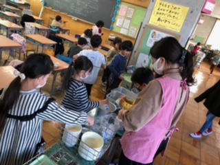 今日もたくさんおかわりして、お腹いっぱいの1年生。「ごちそうさま」をした後の片付けもしっかりできます。