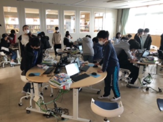 試行錯誤しながら自分が考えた命令を出入力し、その通りにうまく行った時には歓声が上がっていました。