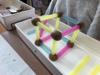 面の形や数、辺や頂点の数を視覚的に学んでいました。