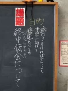 担任に確かめると、終中伝会→「おちゅうでんかい」と読むそうで、その心は【終 わりよく、中 学校へ向けて、伝 説を作る、みんなの 会】だそうです。