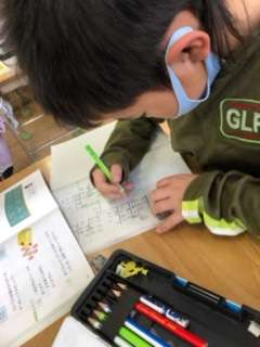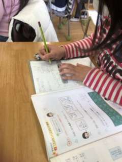 筆算をする場面では、定規を使って丁寧に計算の学習をしていました。丁寧な計算が位取りの間違いを減らすポイントです。