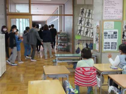 最後に、6年生が1年生から5年生、ひばり学級の子どもたちの前を歩いて通りました。中庭を使う予定でしたが、雨天のため、体育館も使いました。子どもたちはとても良い表情をしていました。(6年生は少し照れくさそうでした。)