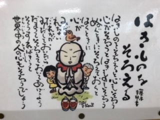 さすがは最高学年、どのクラスもビシッと揃っています。靴箱の上には【藤本幸邦 住職】の名言が掲示してありました。その言葉の通り「履き物が揃えば、心が揃う」ですね。