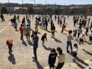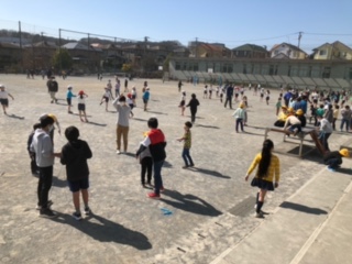 休み時間になると、跳びなわを持った子供たちが校庭にどんどん出てきます。