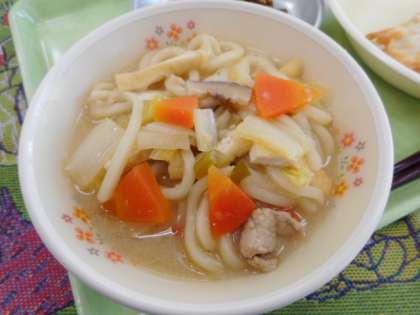 豚肉・にんじん・ながねぎ・はくさい・干ししいたけ・油揚げが入って