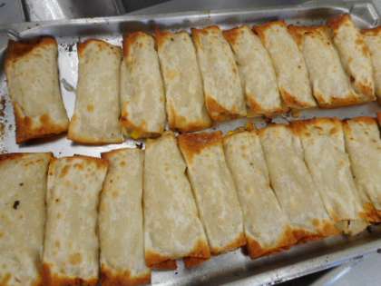 ぎょうざの皮で棒状に包んで天板にならべ、