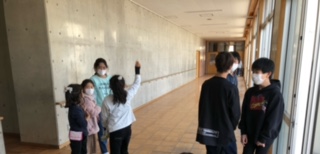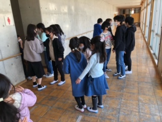 給食前に手洗いをしようと水飲み場に行くと、6年生と1年生が楽しそうにお話をしていました。