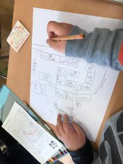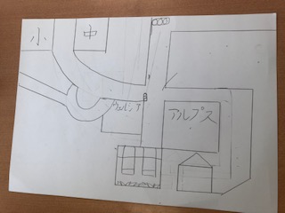 自分が描いた地図の上に、これまでに調べた「安全な場所」「危険な場所」を描き込んでいきます。