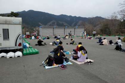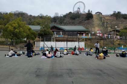 食べ終わるまで、一方向を向いて黙々と食べています。時間をずらして分散お弁当タイムです。