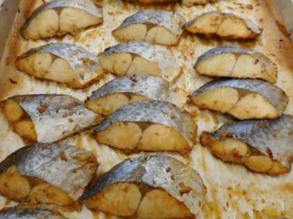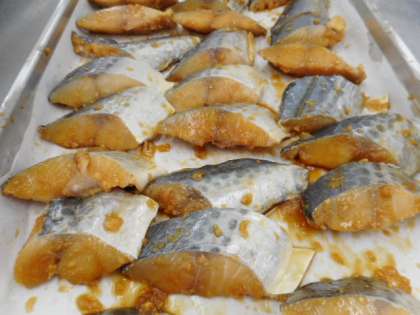地元のおいしい魚屋さんからおいしい鰆が納品されました。この鰆に下味をつけて、鉄板に並べ、オーブンでふっくら焼き上げます。
