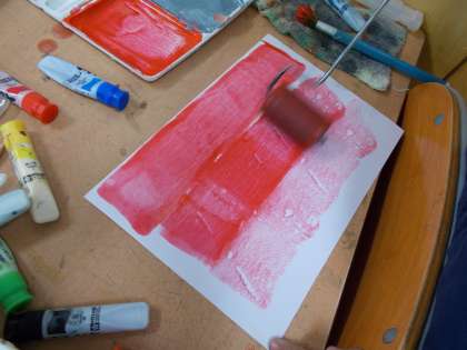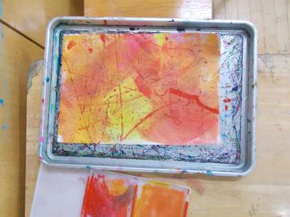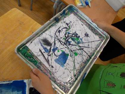 じぶんいろがみの2回目はビー玉やローラーを使っていろんな模様を表現しました。同じ材料や道具を使っても表現は多種多様です。
