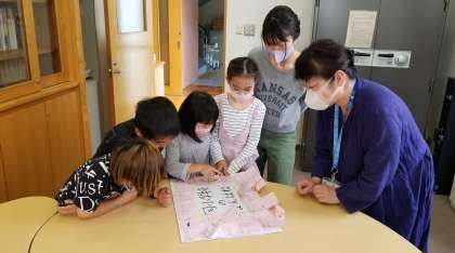 中休みに、2年5組の代表の子供たちが校長室に、模造紙を持ってきました。