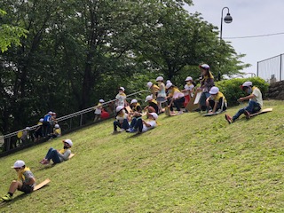 宇津貫公園でのそりすべりのようすです。繰り返すごとにコツをつかんで上手にすべれるようになっていくので、何度も何度もチャレンジしています。