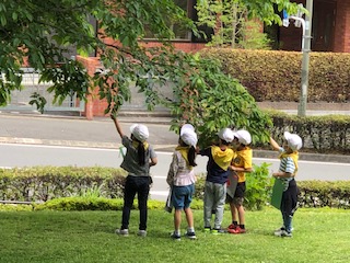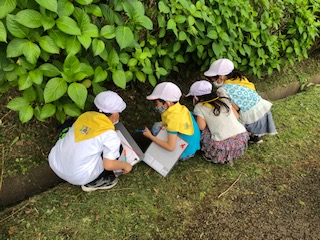 後半の公園探検の活動のようすです。ダンゴムシが大人気です。