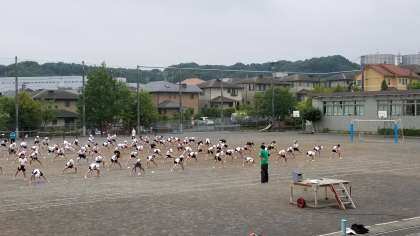 昨日は、校庭での練習が出来ない学年も多くありましたが、今日は、校庭を広々使って練習をしています。
