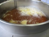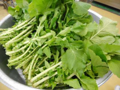 具には八王子大根(根と葉)とともにツナも33キログラム使いました。そのほかにえのきたけを入れ、砂糖、塩、酢、しょうゆで味つけしました。八王子春大根のうまみたっぷりの具に仕上がりました。