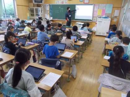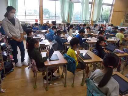 現在、ICT主任が中心となって、他のクラスや学年に端末の活用術を広める活動を行っています。