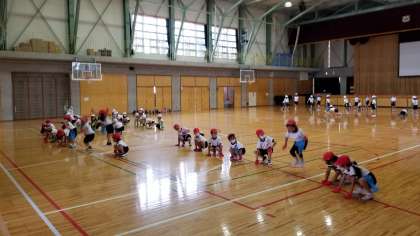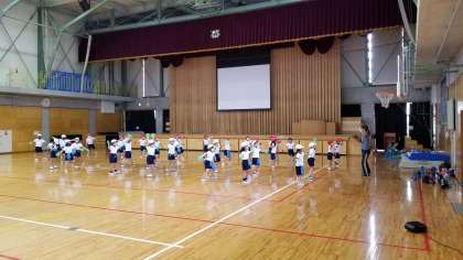 本日、校庭の割り当てがない1年生は、体育館で練習を行っていました。