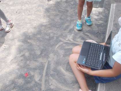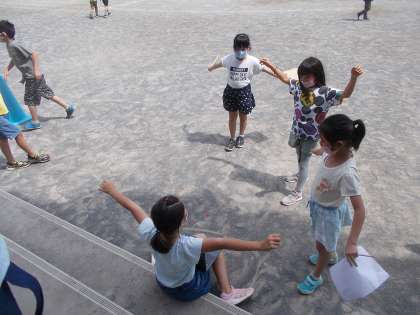 先日、昼休みの校庭でのことです。クロームブックを活用し、自分たちの学年の運動会の「表現」を検索し、それを見ながら自主的に練習に取り組んでいる児童の様子がありました。
