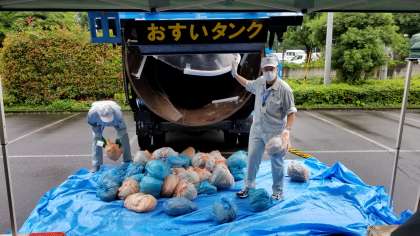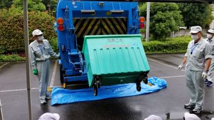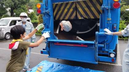まずは、清掃車を使ったごみ投入の疑似体験をさせてもらいました。