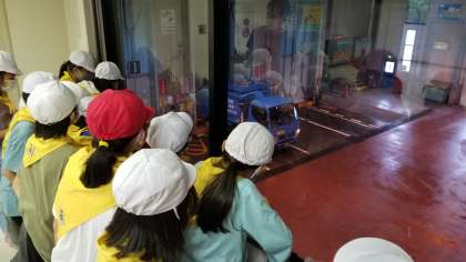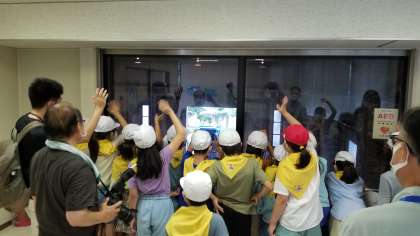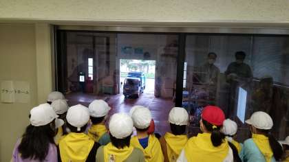 タイミングよく収集車が来ました。運転手さんに手を振ったら、振り返してくれました。