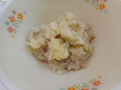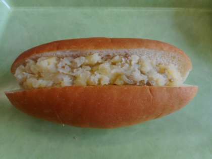 マッシュサンドはセルフサービスサンドで自分でマッシュポテトをはさんで食べます。パンを食べる日には普段よりしっかり手を洗ってから食べるように声かけします。また、柔らかいパンですが急いで食べることがないように小さくちぎってよくかんで食べるように声かけしています。